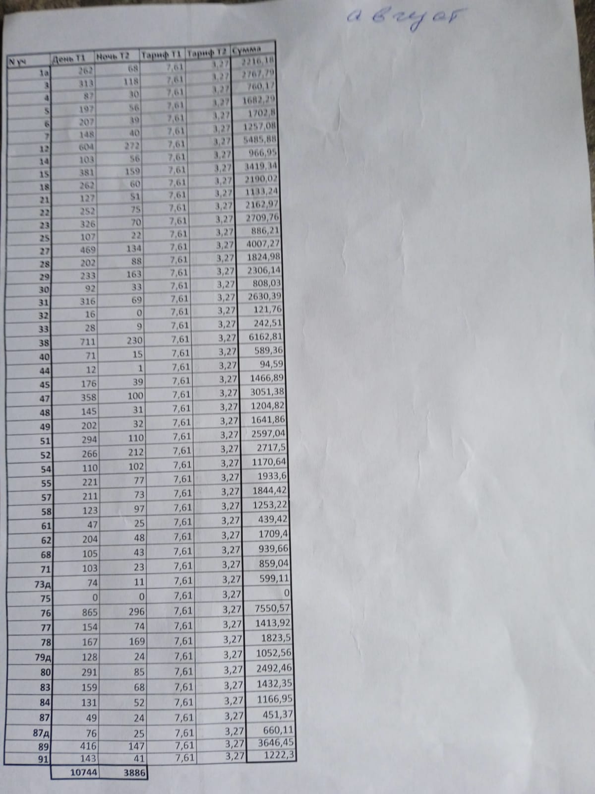 Показания счетчиков электроэнергии август 2022 и сельский